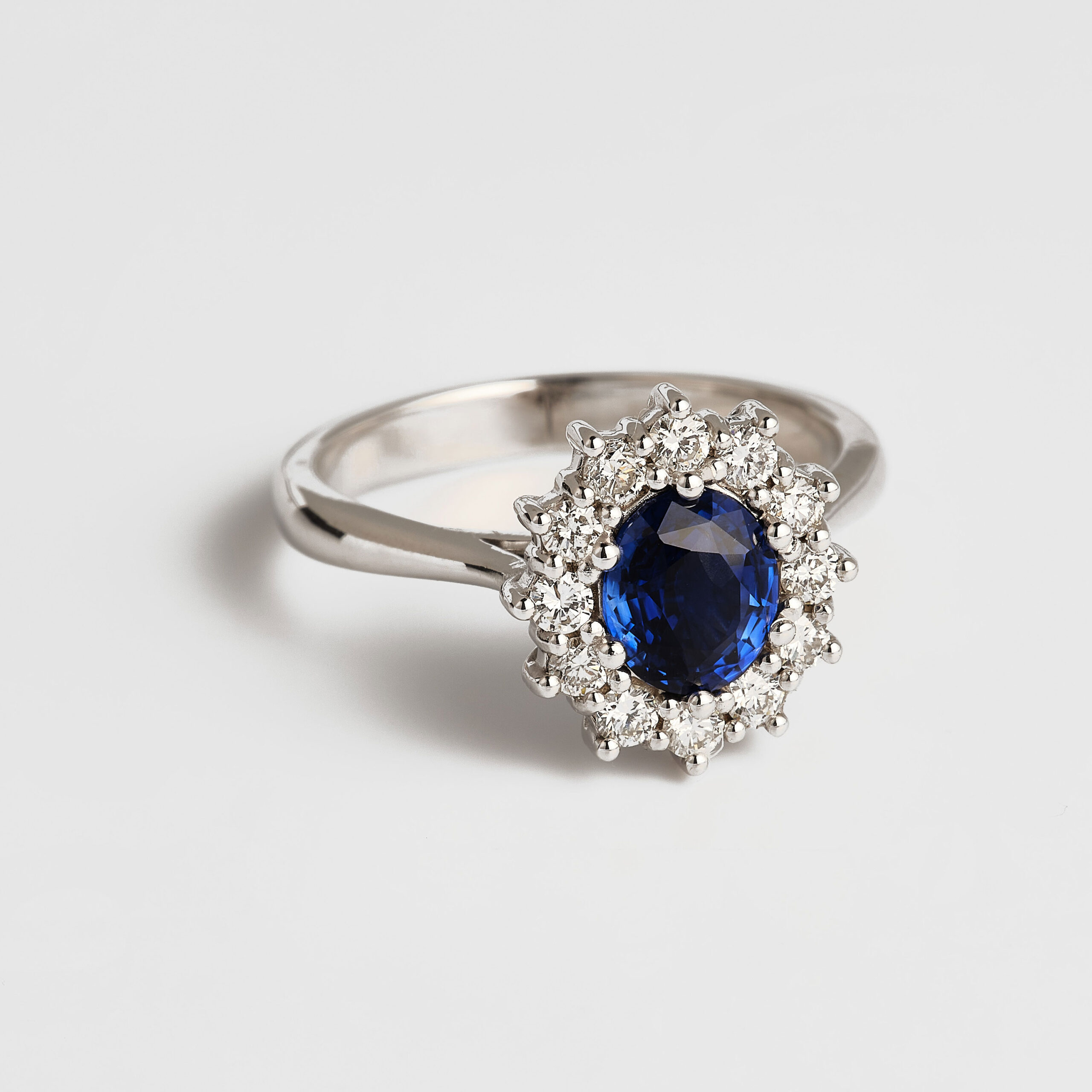 • Piedra central: Zafiro azul natural, 1,20ct, calidad superior