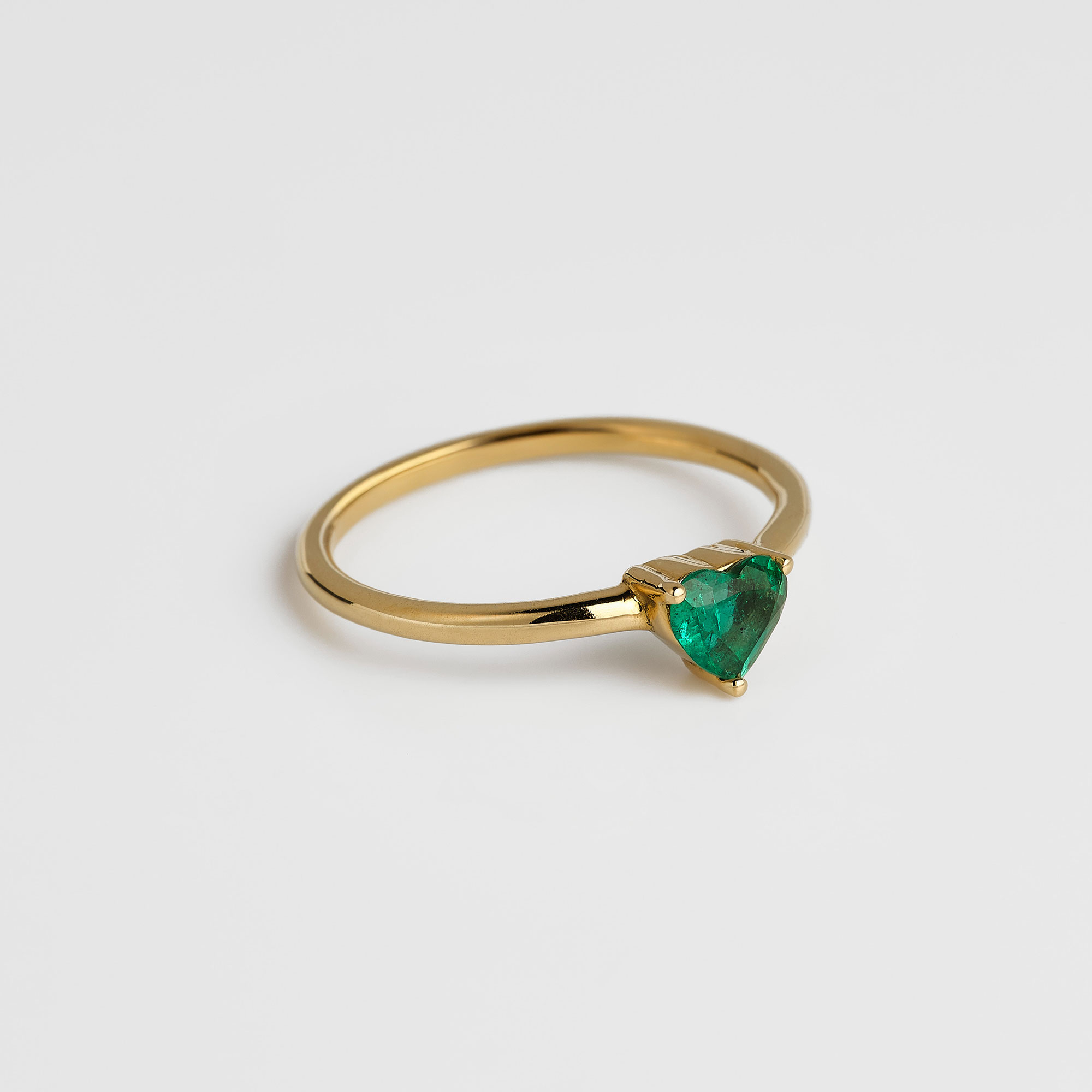 Romántico y sofisticado, este anillo presenta una esmeralda natural en corte corazón de 0,30 ct, símbolo de amor y elegancia atemporal.