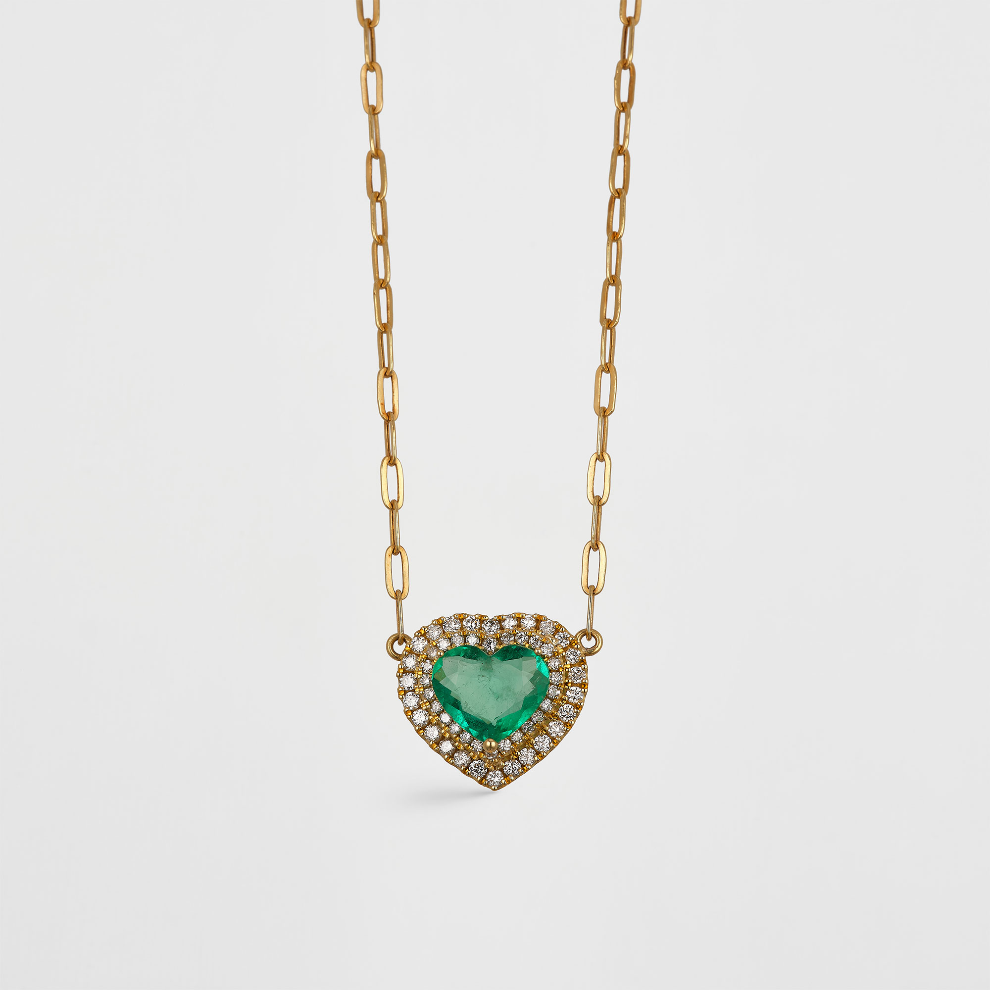 Cadena con Dije Corazón de Esmeralda – 0,36 ct y Diamantes Naturales 0,18 ct
