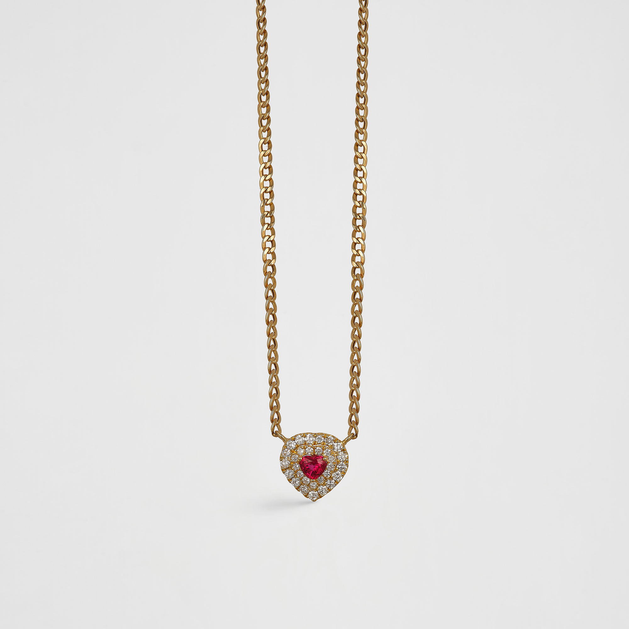 InicioTiendaCadenasDiseñosCadena dije corazón rubi top quality halo diamantes