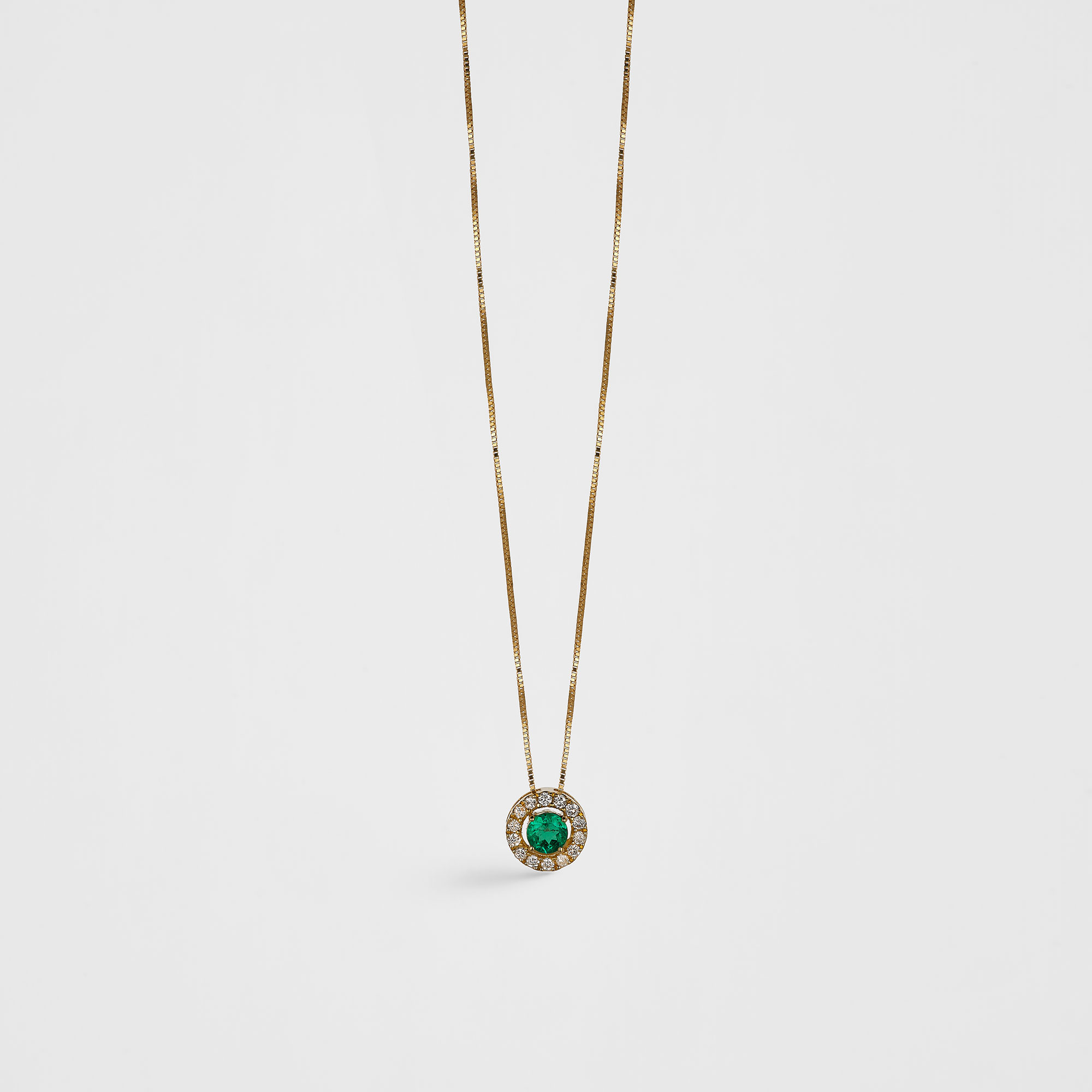 Cadena con Dije Halo – Esmeralda Colombiana 0,23 ct y Diamantes Blancos Naturales 0,17 ct en Oro 18k